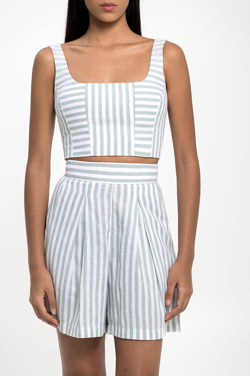 شورت عالي الخصر بكسرات أمامية