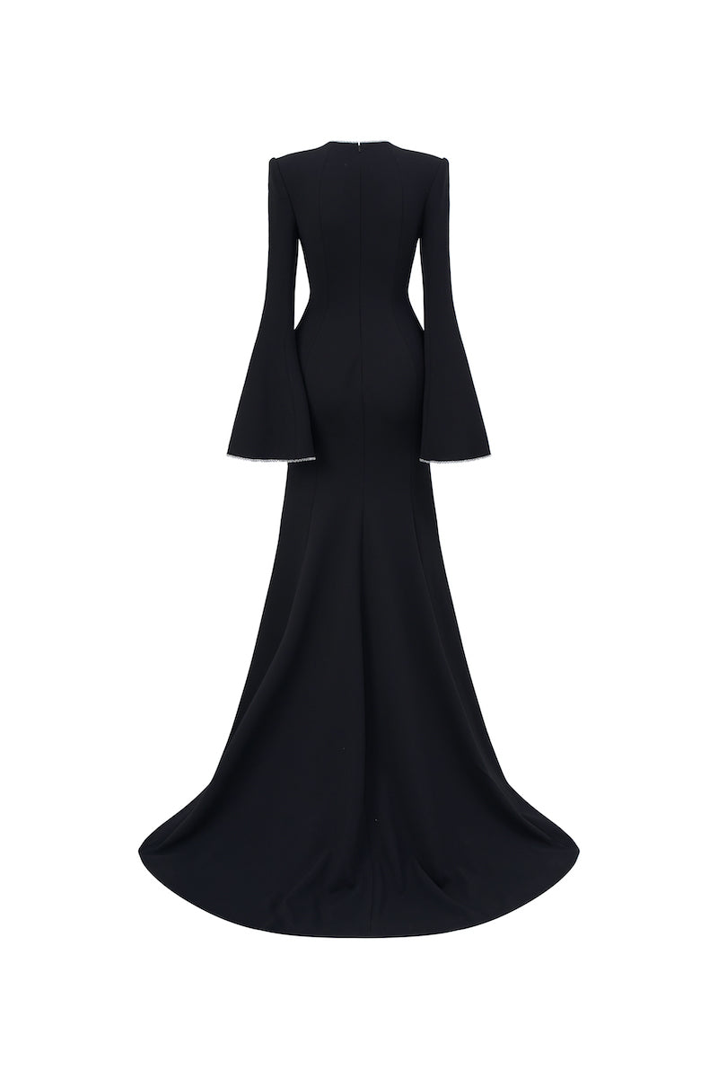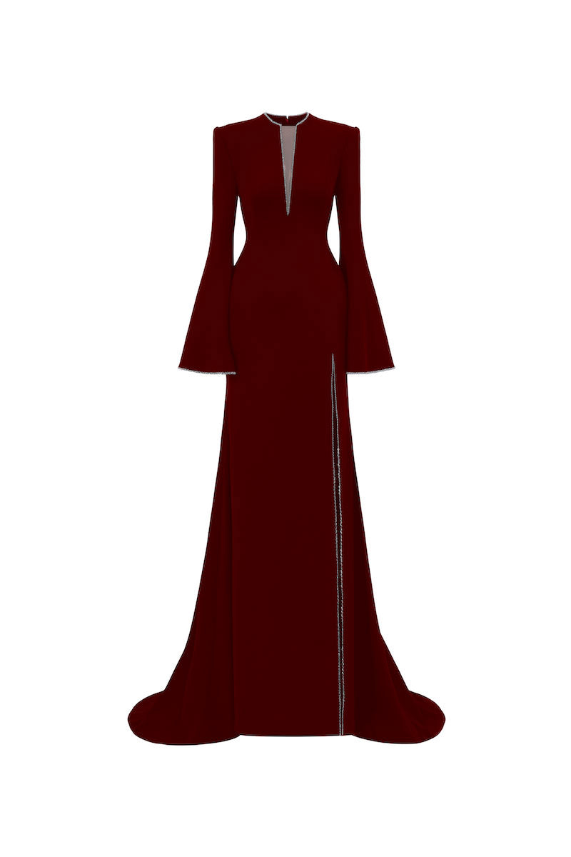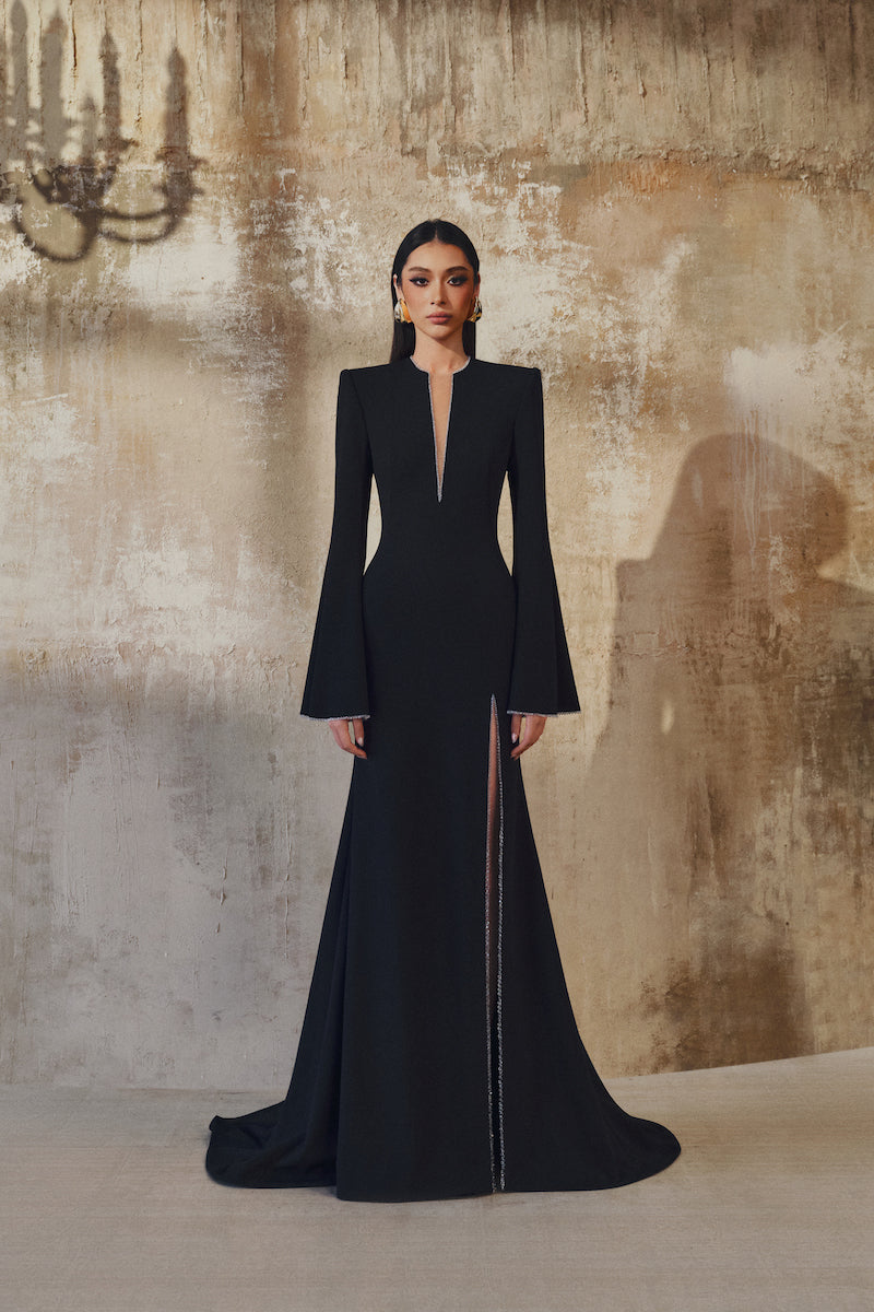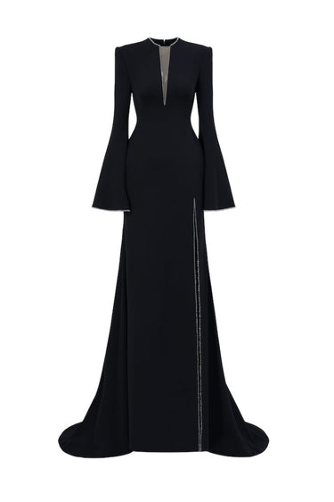 - فستان حورية البحر بأكمام طويلة من الكريب مع فتحة أمامية