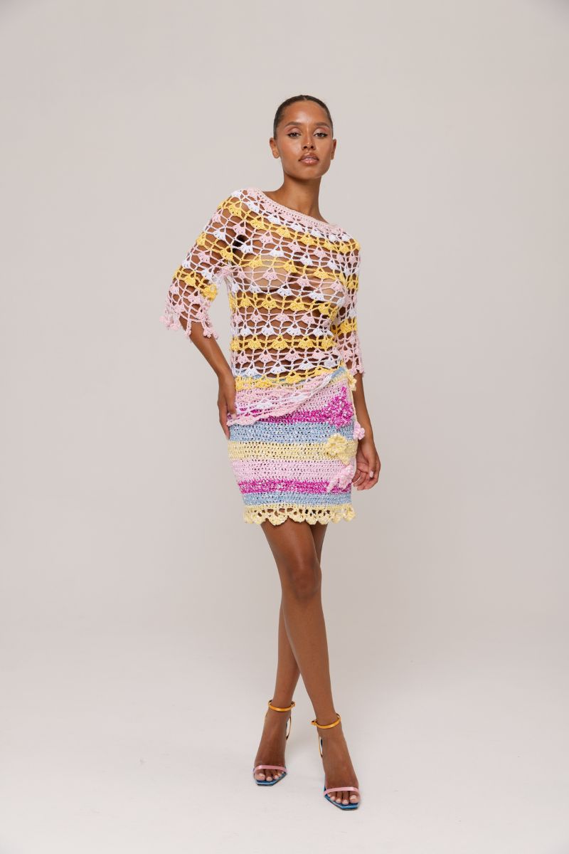 تنورة كروشيه صغيرة مصنوعة يدوياً على شكل طائر الجنة