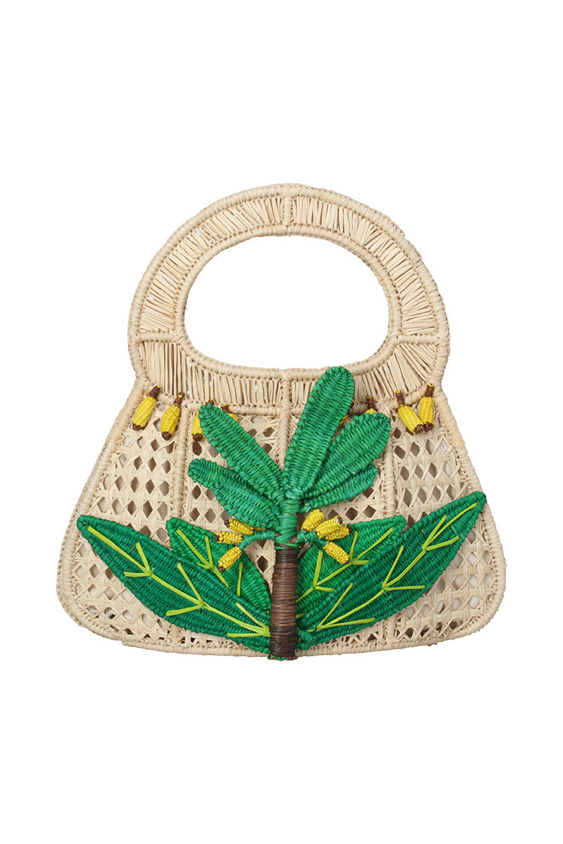 - حقيبة مصنوعة يدويًا من خشب الرافي الطبيعي ومزينة بنخيل النخيل