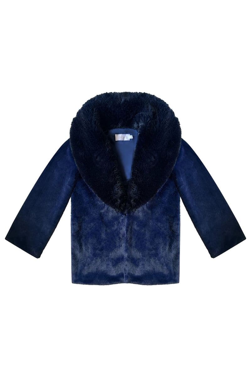 الأزرق الداكن - معطف فرو نباتي مع ياقة سوداء