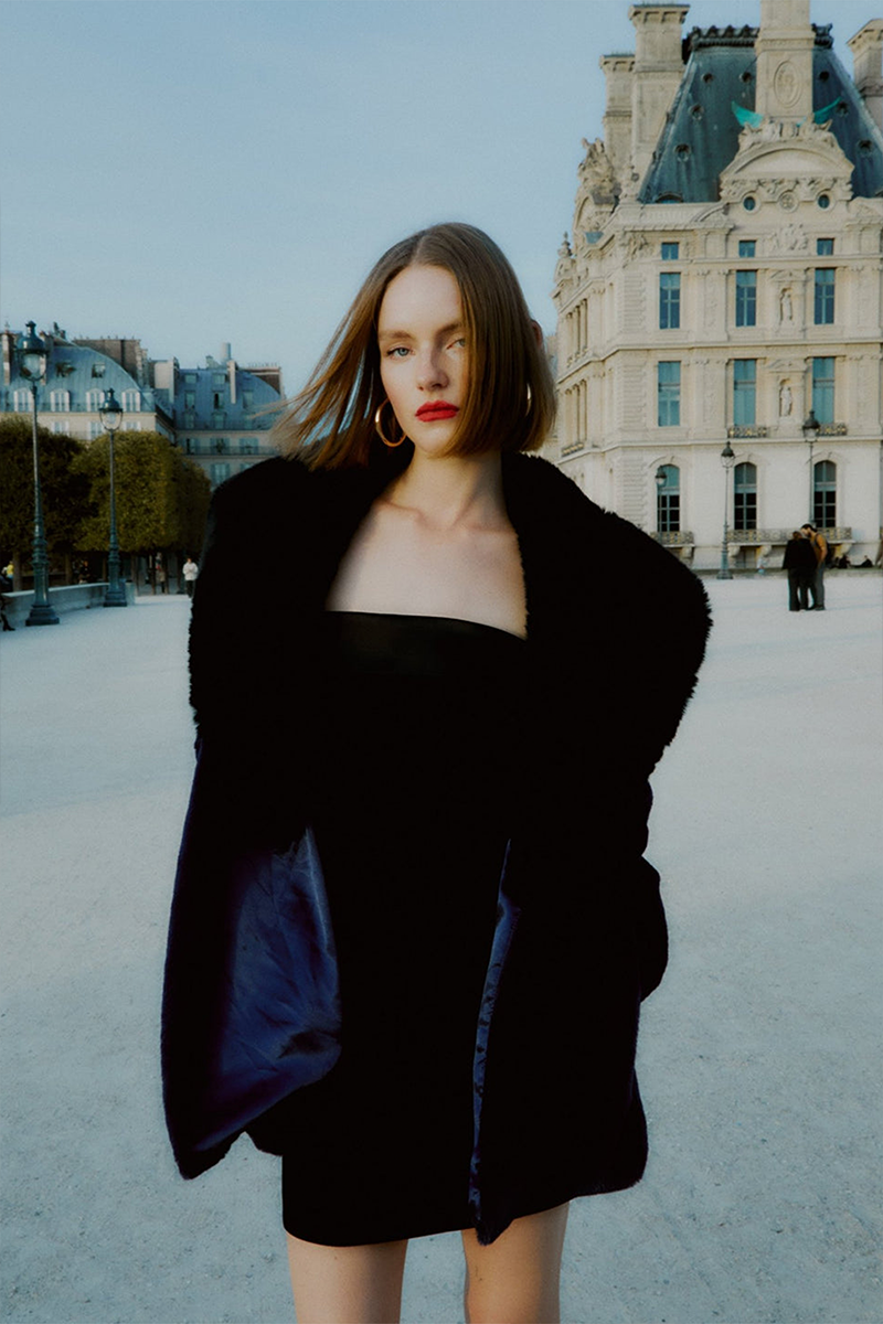 معطف MADELINE VEGAN الضخم ذو اللون الأزرق الداكن الأنيق، مصنوع من فراء صناعي رائع ومبطن لإضفاء لمسة فاخرة. تضيف الياقة السوداء تفاصيل أنيقة وخالدة.