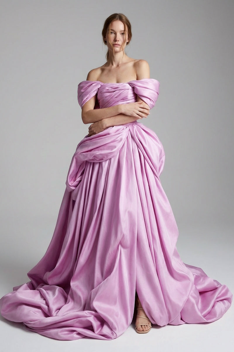 فستان أنيق بتنورة واسعة وذيل طويل مثير للإعجاب.