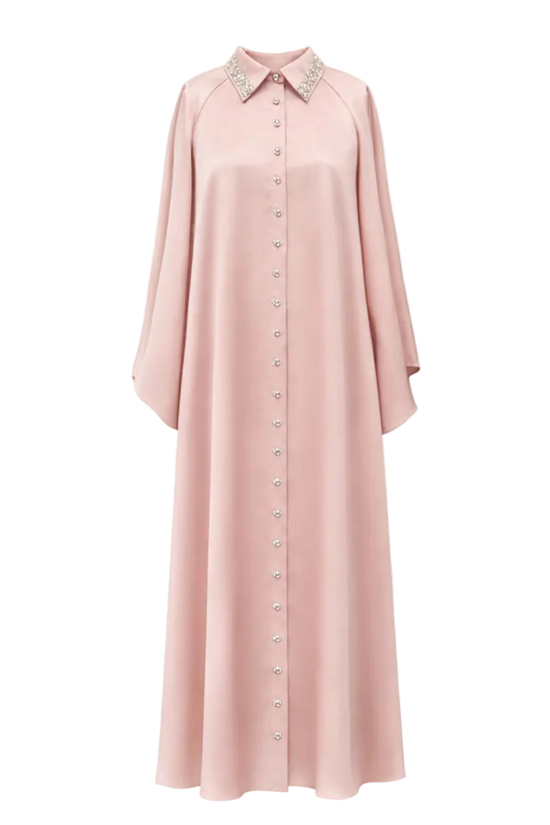 فستان قميص قفطان من تصميم كولت ميا بالتعاون مع سيمسم، بياقة مزينة باللون الوردي