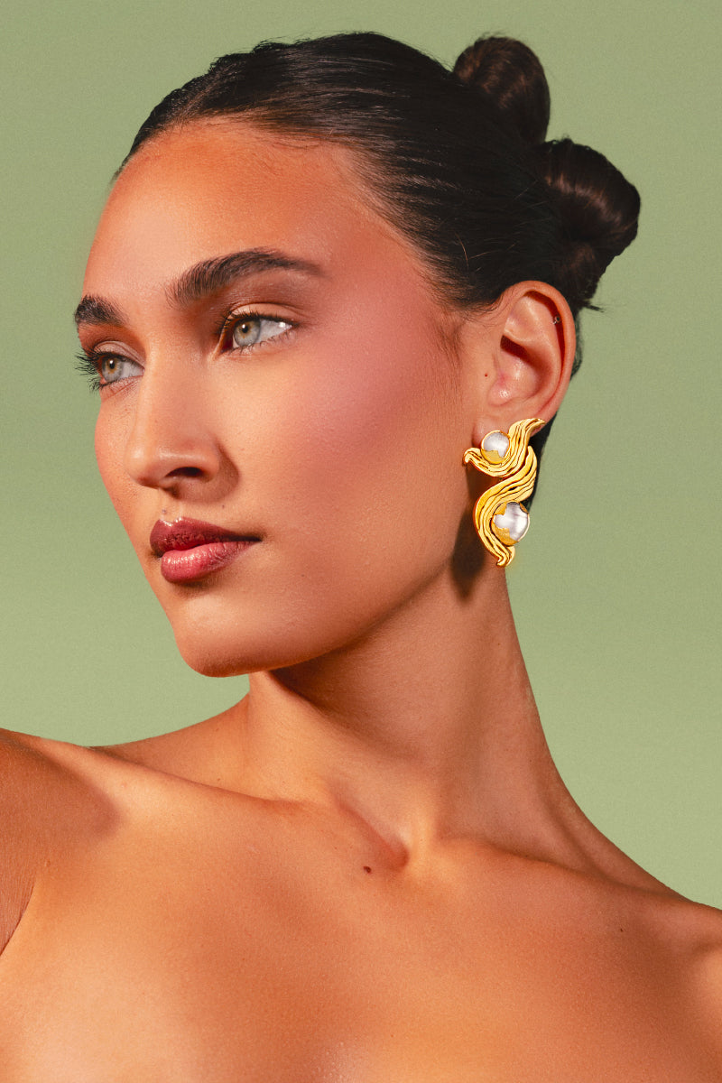 التكوين: نحاس مطلي بالذهب عيار 24 مع لمسة نهائية غير لامعة وأحجار راتنجية مصنوعة خصيصًا.