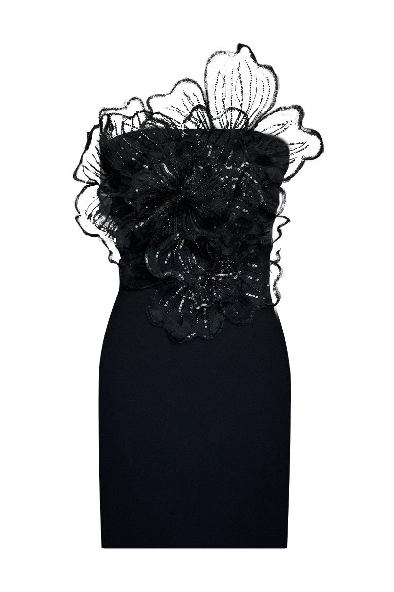- زخارف زهرية ثلاثية الأبعاد من التول (على الكتفين والصدر)
