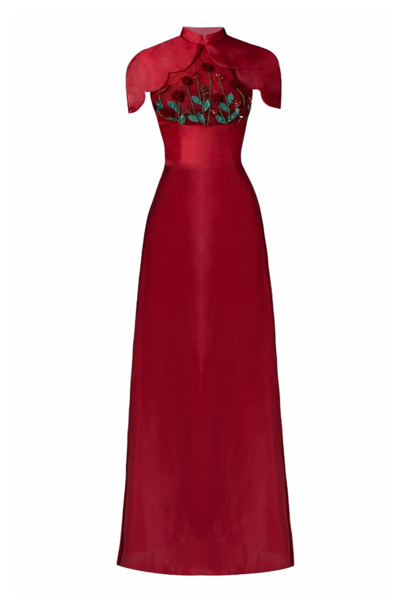 ارتقِ إلى قمة الفخامة مع طقم آو داي الرائع المكون من قطعتين. يتميز هذا الطقم بتطريز زهري خلاب وأحجار كريمة، ويتألق بكتف صدفي وقصة آو داي الكلاسيكية. يضيف تصميم الرقبة المندرينية وأكمام الكاب وسحاب الإغلاق لمسة أنيقة إلى هذا الطقم الذي لا غنى عنه.