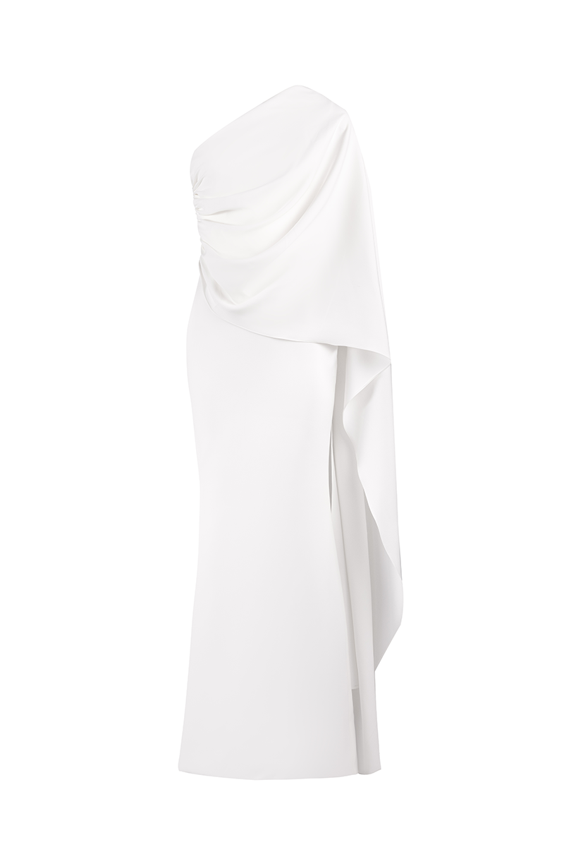 فستان كريب مع وشاح باللون الأبيض