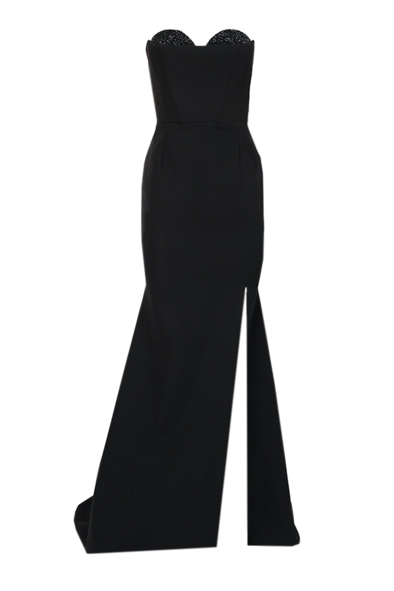 ينضح "فستان الكورسيه Embellished Noir" بالأناقة والجاذبية، ويمزج بسلاسة بين الرقي ولمسة من السحر الجريء. يتميز هذا الفستان المشد بدون حمالات بتصميم رائع، يرتقي به إلى قطعة مميزة تستحق أي مناسبة راقية. في مقدمة تصميمها توجد الأكواب السوداء المذهلة المصنوعة من حجر الراين والتي تجذب الانتباه ببريقها الآسر. لا تعمل هذه الزخارف المعقدة على تعزيز المظهر الجمالي للفستان فحسب، بل تضيف أيضًا بعدًا فاخرًا إلى مظهره العام. تم تصميم صدرية الكورسيه لإبراز الصورة الظلية لمرتديها، وتوفر مقاسًا جذابًا وتؤكد على المنحنيات الأنثوية بتصميمها المنظم.