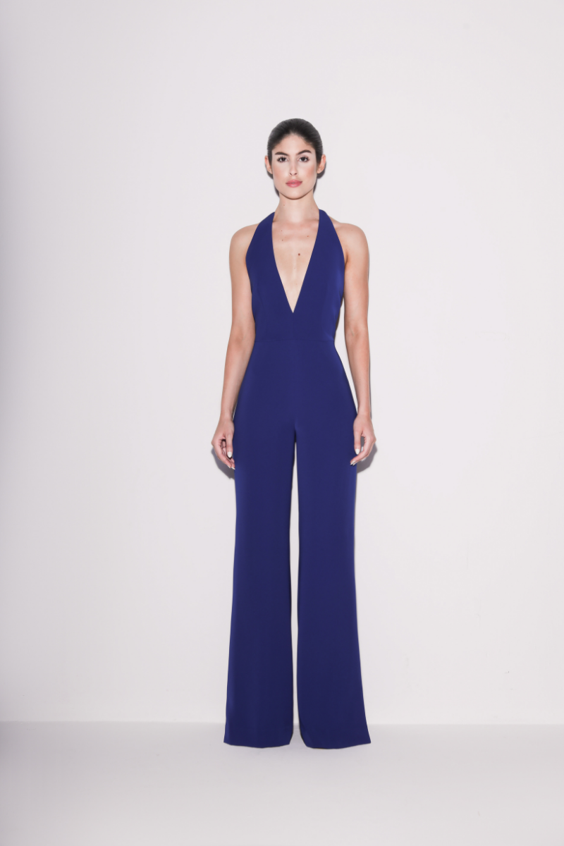 جمبسوت أنيق بفتحة رقبة على شكل حرف v باللون الأزرق الملكي