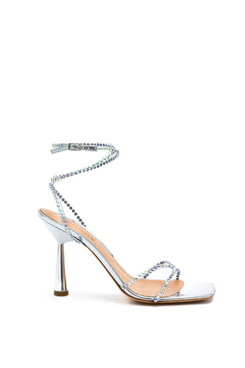 صندل كيم يُجسّد فخامة التسعينيات بتصميمه ذي الأشرطة. يتميز بحزام مائل على شكل حرف "K" عند الأصابع وحزام كاحل بإبزيم يُطيل الساقين، كما أنه مرصّع بكريستالات سواروفسكي لامعة على طول الأشرطة، مما يجعله مثاليًا للمناسبات الخاصة أو لأمسية مع الأصدقاء. نسّقيه مع أطراف قصيرة لإبراز أناقته.