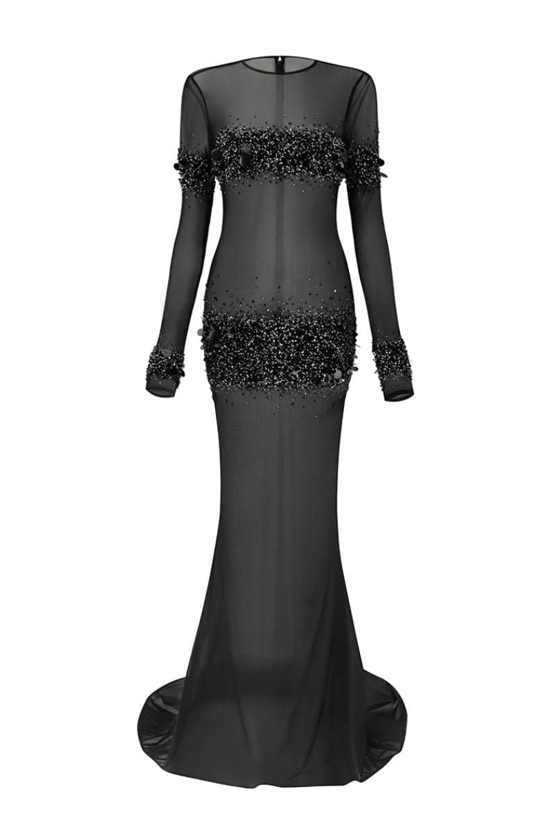 فستان فاخر مزين بالخرز والأحجار الرائعة المخيطة يدوياً على مادة التول الرقيقة، صُنع بمحبة في فيتنام.