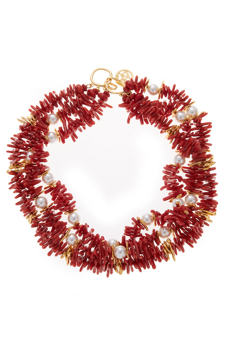 التركيب: مكونات مطلية بالذهب عيار 24 قيراط - قلادة من الأصداف المرجانية مع لآلئ زجاجية