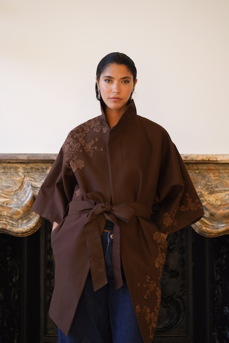 الخامة: صوف بني موكا مع بطانة حريرية