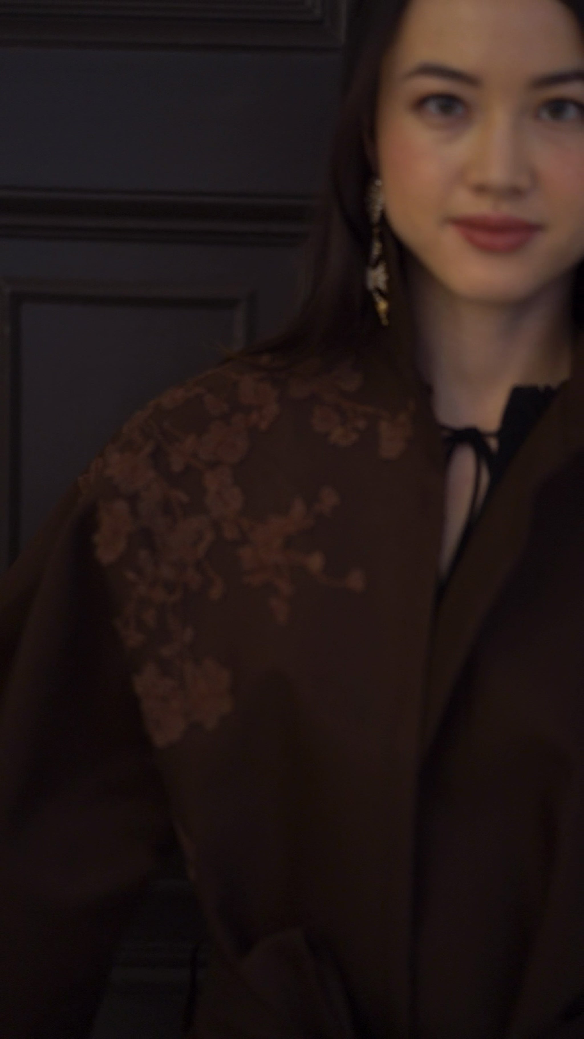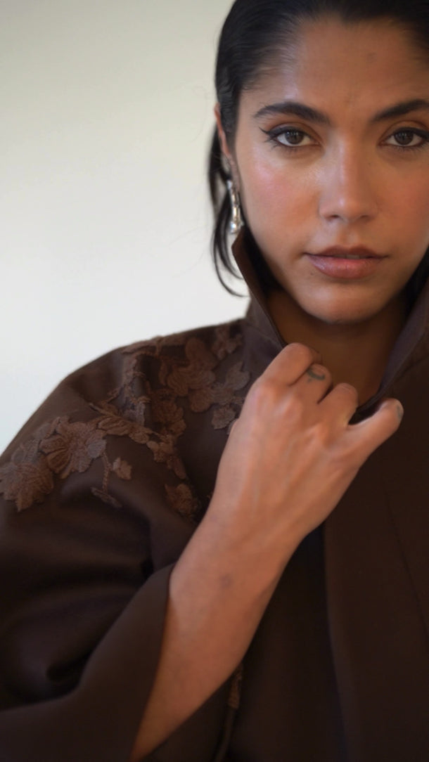 - تفاصيل يدوية باللون الموكا المصنوعة من خيوط الحرير بدرجات لونية متناسقة