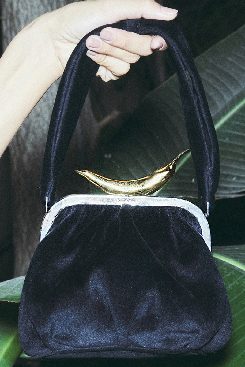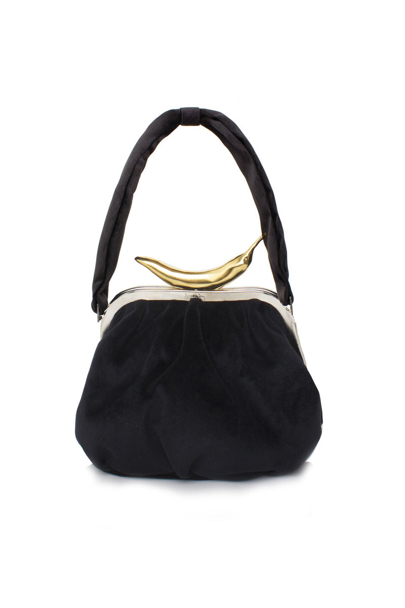 حقيبة يد بيلا من المخمل باللون الأسود والفلفل الحار