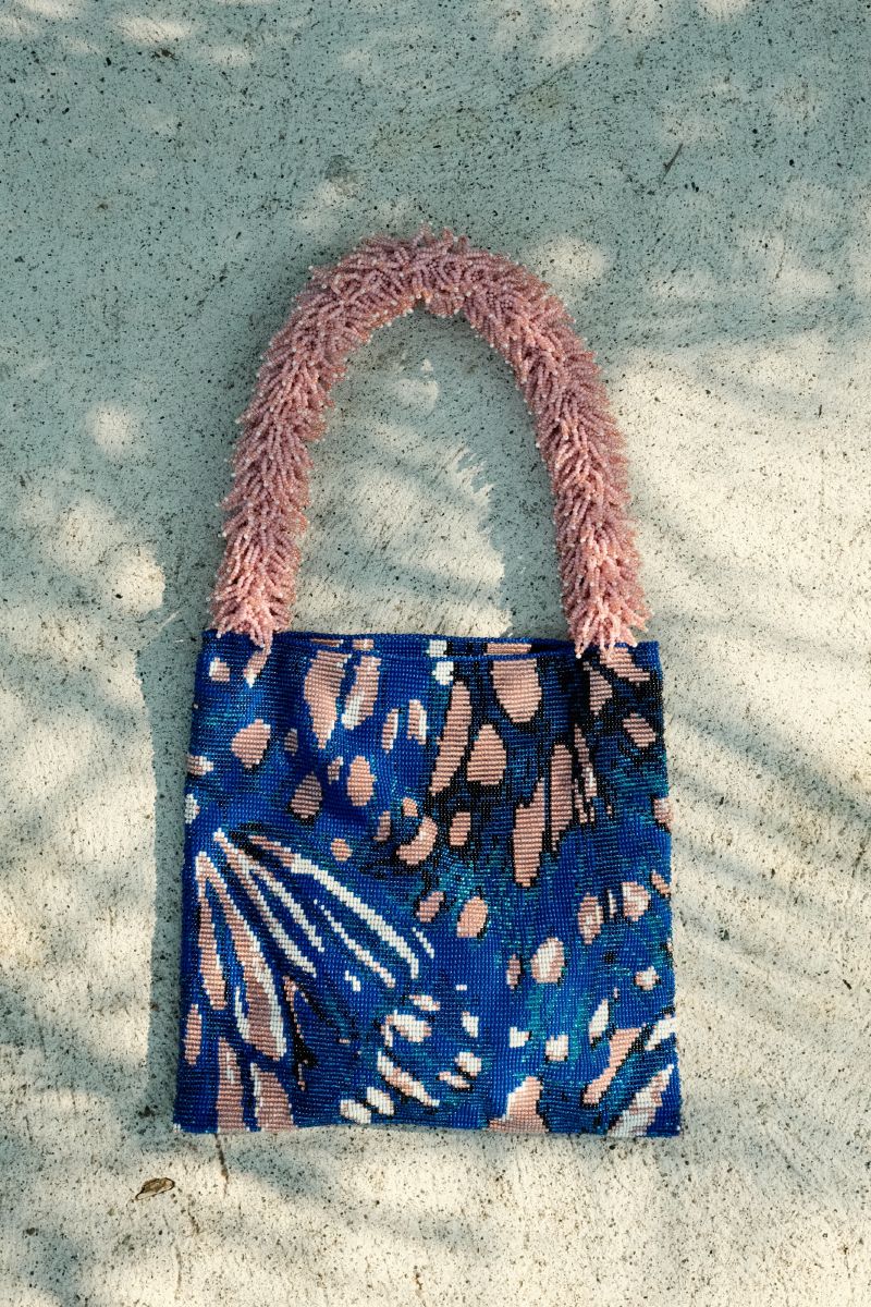 حقيبة clash of prints باللون الأزرق الفراشي مع اللون الوردي والأخضر
