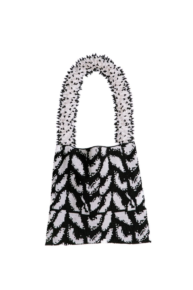 حقيبة clash of prints من الريش باللونين الأبيض والأسود