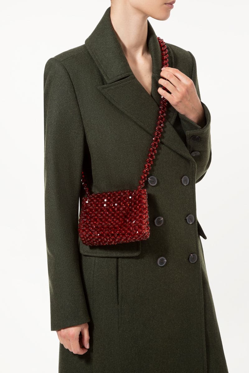 نقدم لك حقيبة كروس صغيرة مصنوعة يدويًا، مصنوعة بأناقة وتفاصيل. للتثبيت، تتميز هذه القطعة بقفل قلاب جميل، ولمسة مميزة رقيقة، توجد لوحة شعار مطلية بالذهب الوردي في الخلف.