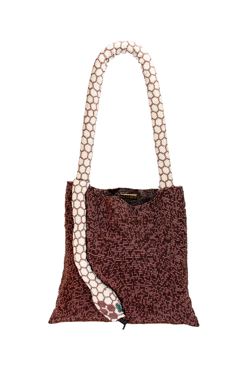 حقيبة سيربنت الكبيرة باللونين العنابي والكريمي