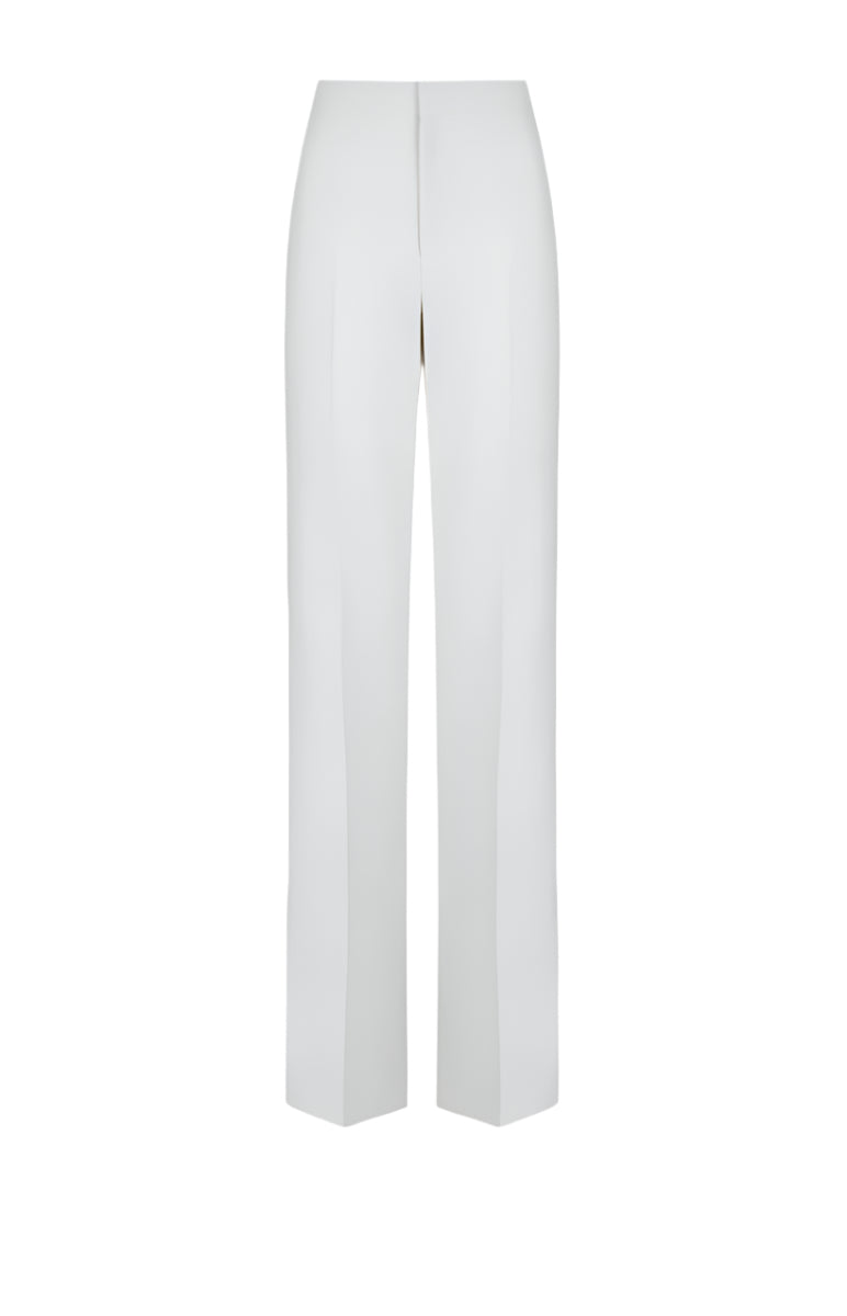 مصنوع من الكريب المغربي مع لمسات من حرير الساتان، يتميز هذا البنطال الواسع بثنية أمامية أنيقة وشرائط ساتان تمتد على طول الدرزات الجانبية. يتضمن التصميم جيبين خلفيين وسحابًا مخفيًا على الجانب الأيسر. تصل فتحة الساق إلى الحذاء لإطلالة أنيقة.