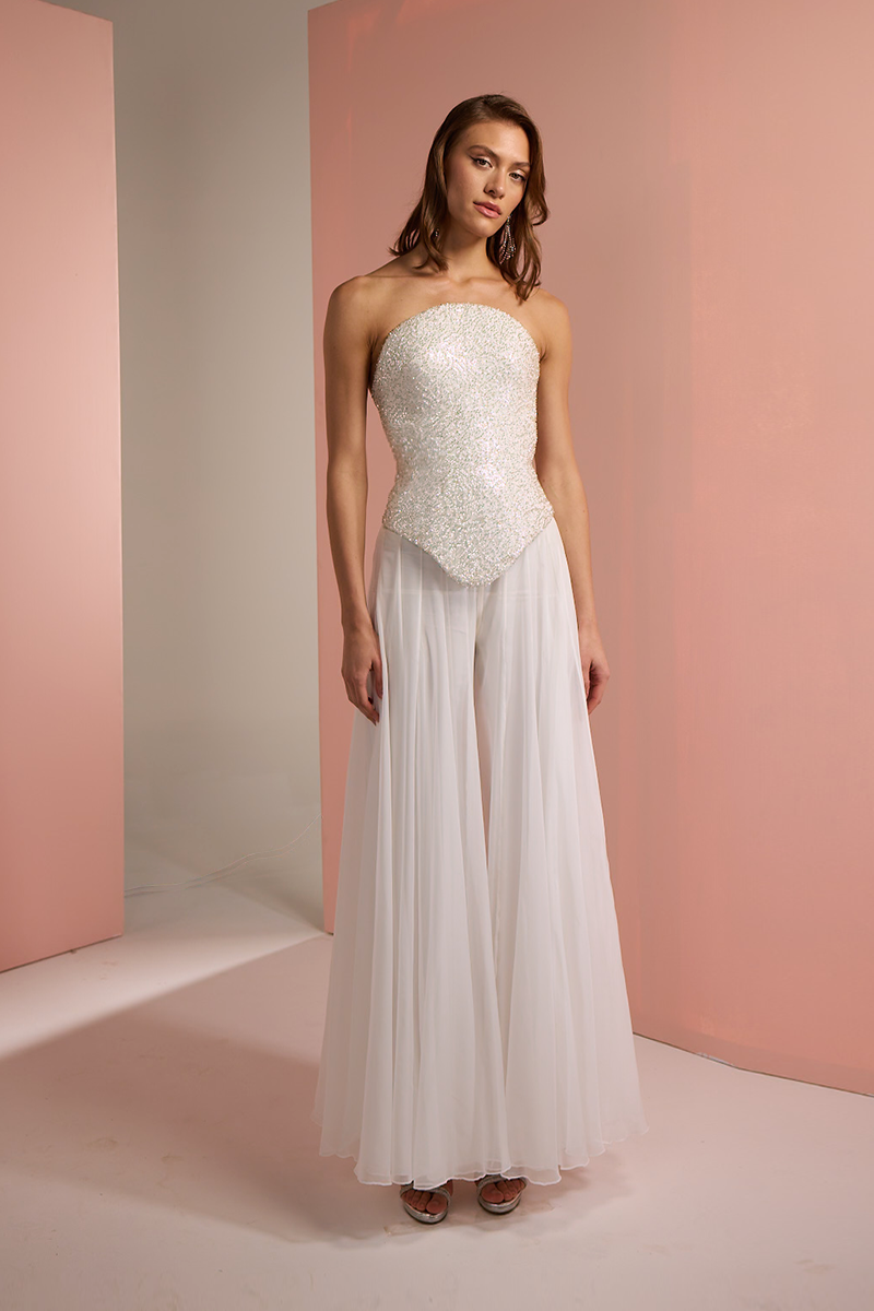 طقم بلوزة كورسيه مع بنطلون بالازو باللون الأبيض