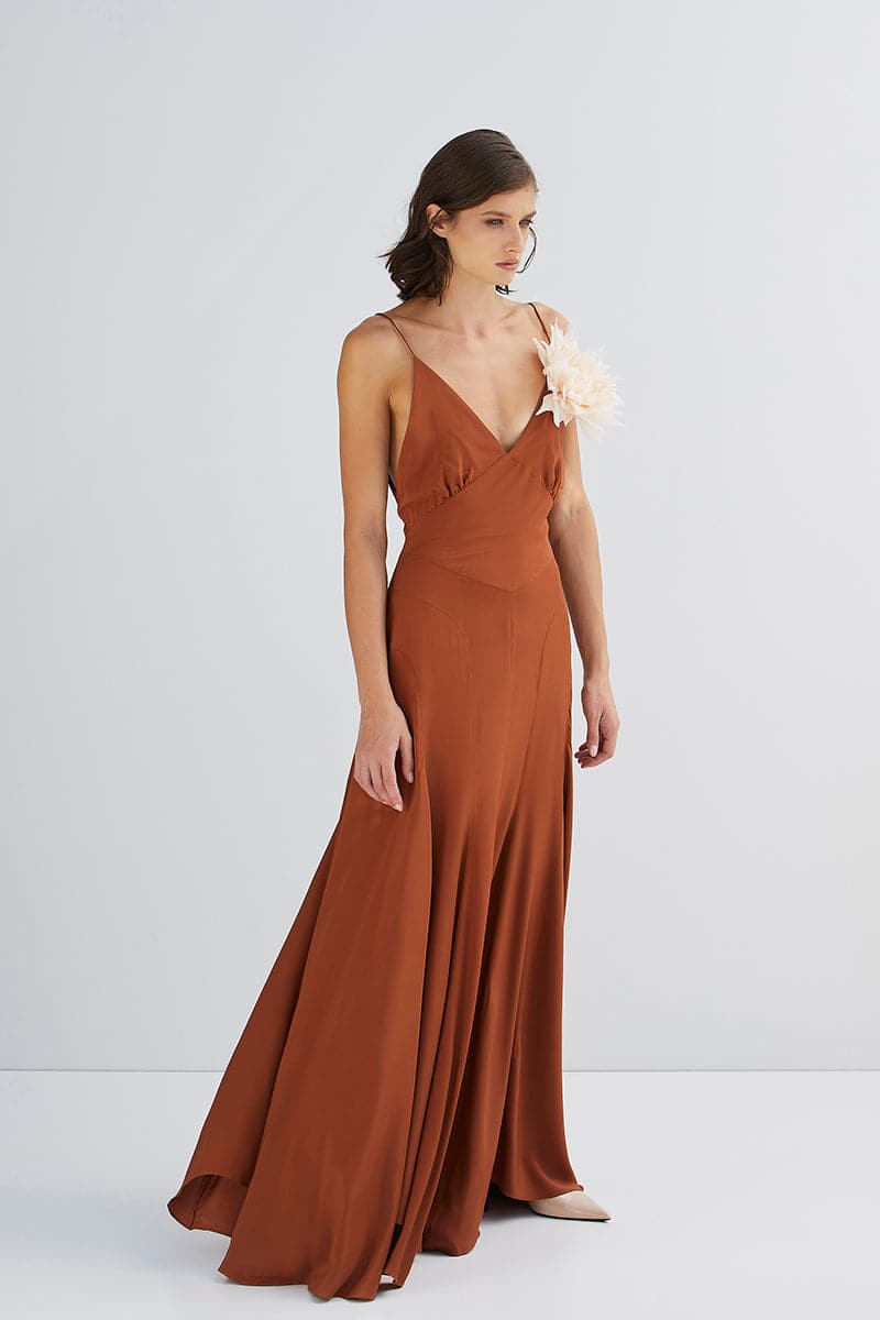 فستان ماكسي بني اللون