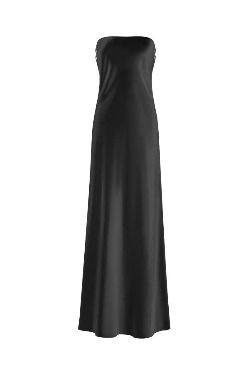 فستان ماكسي أسود من الحرير بدون أكمام