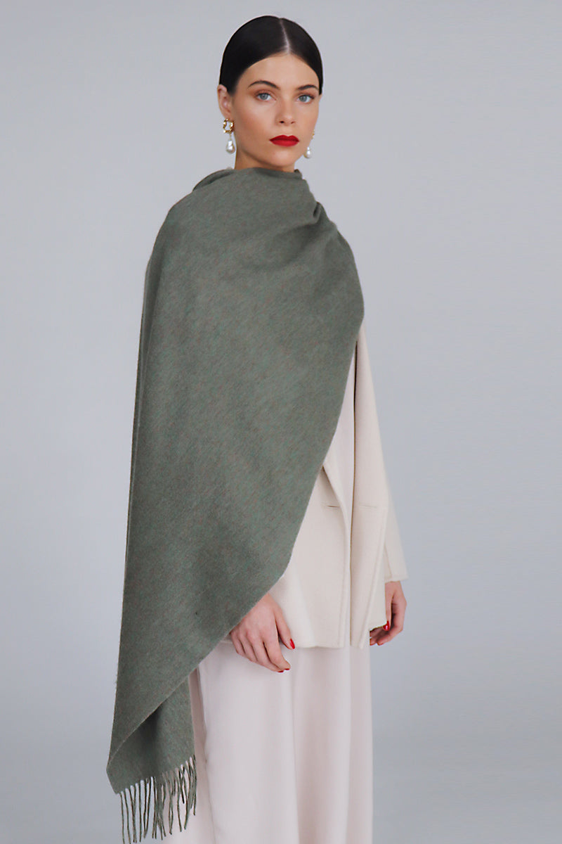 شال من صوف الحمل الهادئ باللون الأخضر الفاتح