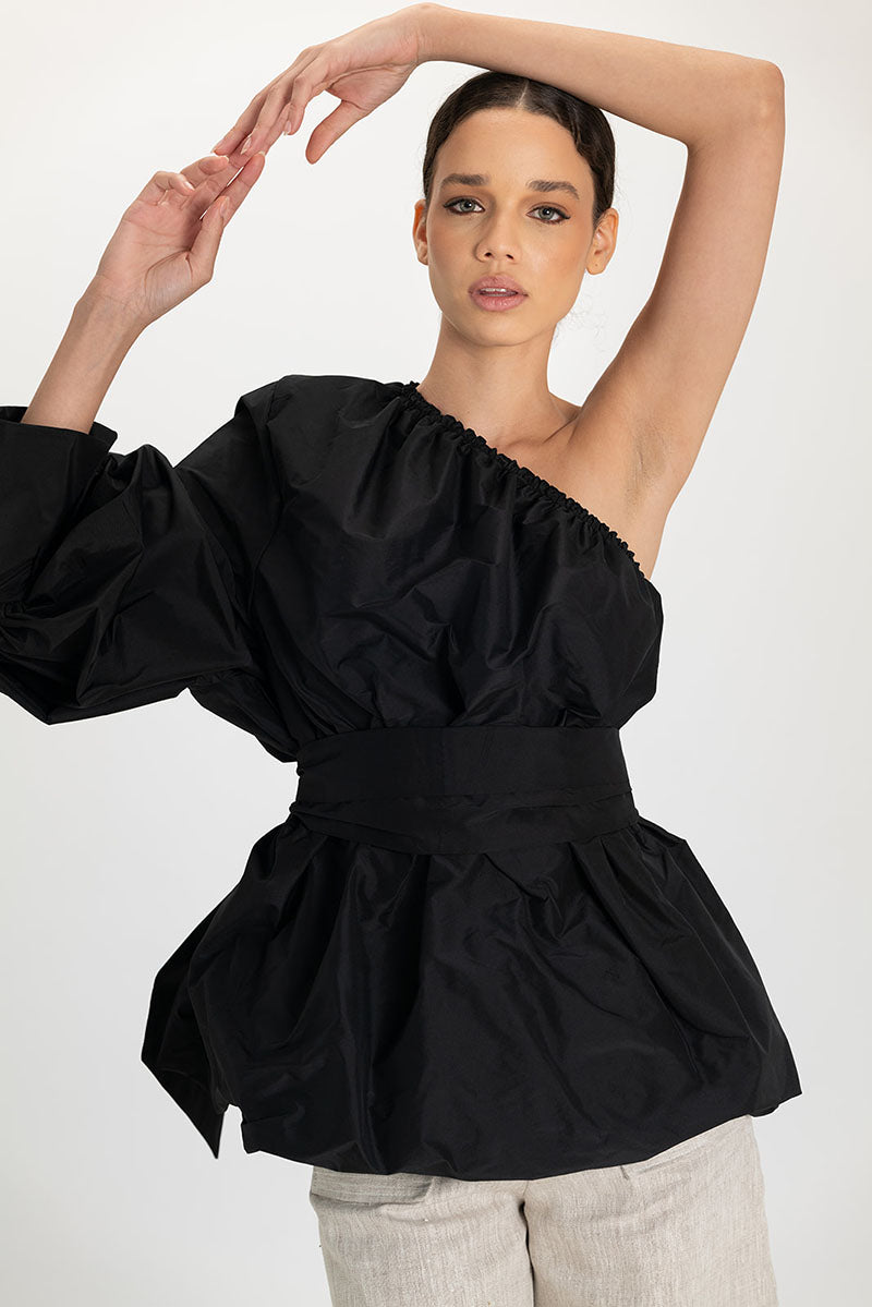 بلوزة من التافتا بكتف واحد