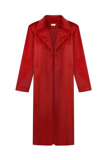 معطف فرو متوسط ​​الطول باللون الأحمر