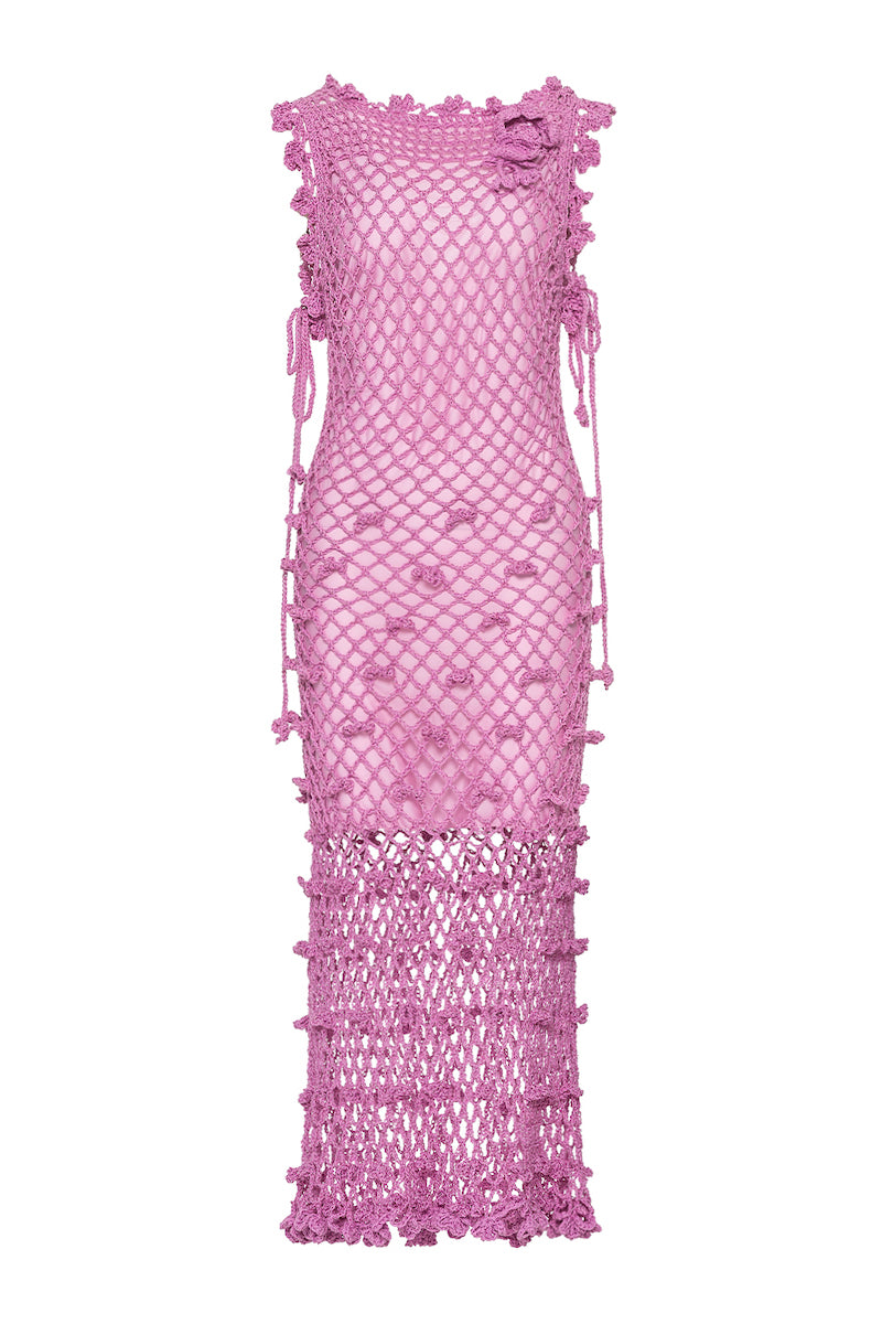 فستان صوفيا الوردي متوسط الطول مصنوع يدويًا
