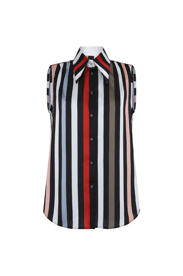 بلوزة بدون أكمام بأزرار وياقة كلاسيكية