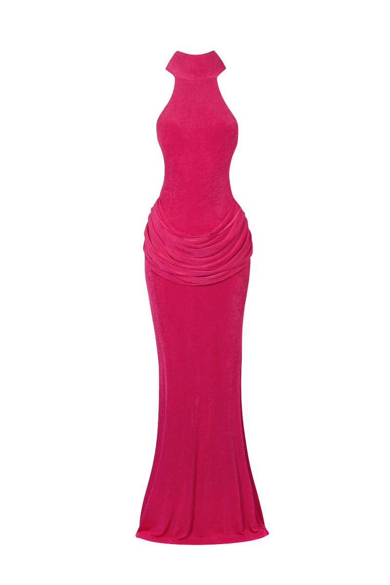 - رقبة على شكل هالتر من الأمام مع أشرطة ربط ذاتية طويلة