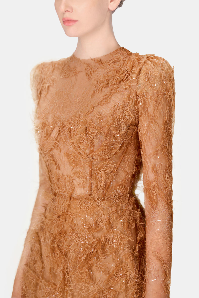 فستان ميني دانتيل مزيّن بالخرز الذهبي