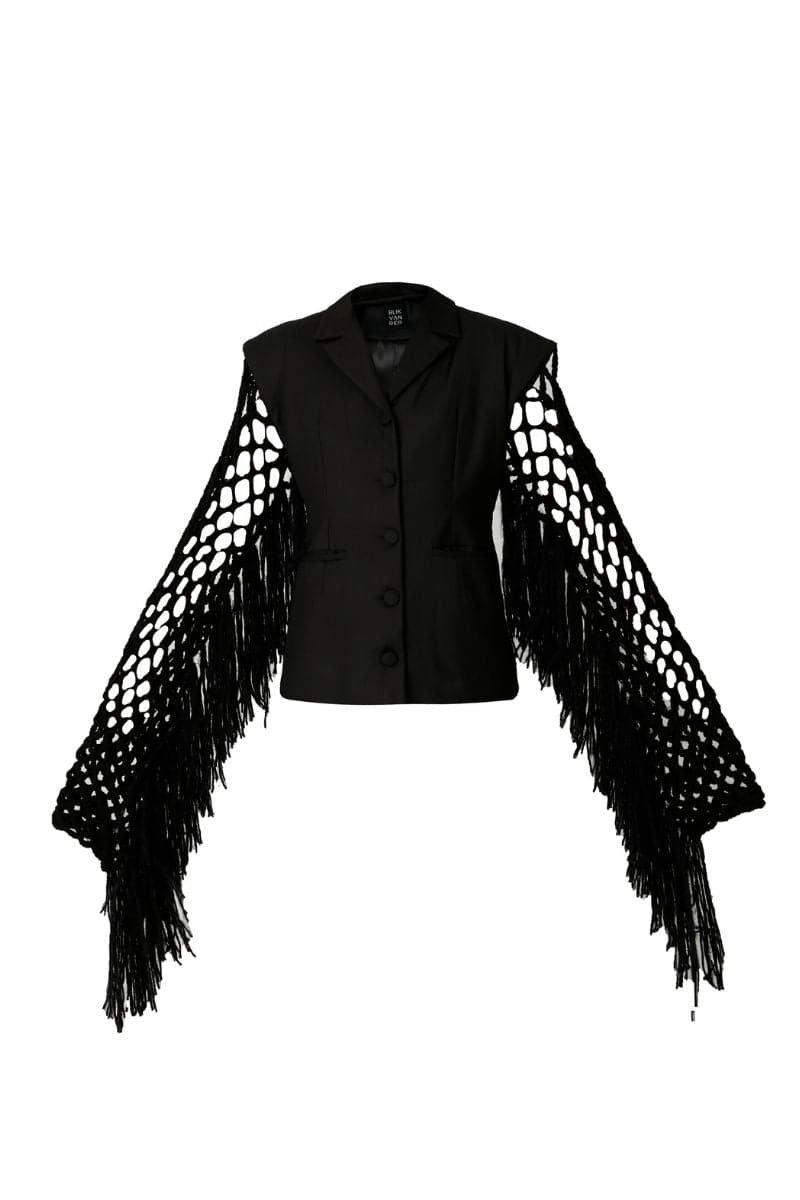 من المؤكد أن هذه السترة السوداء ذات الأكمام الشبكية ستلفت انتباهك. صُنعت هذه السترة من قماش خفيف الوزن وقابل للتمدد، وتتميز بتصميم شبكي ملفت للنظر مع صورة ظلية أنيقة. القماش جيد التهوية، مما يسمح لك بالبقاء مرتاحًا طوال اليوم. الإدلاء ببيان في هذه القطعة!