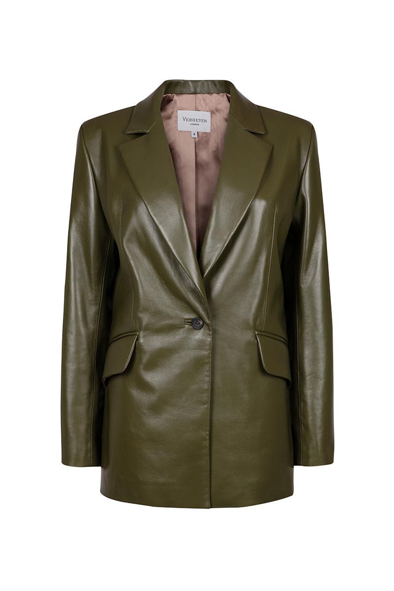 سترة جلدية كبيرة الحجم باللون الزيتوني من مجموعة cult mia x verheyen chesca
