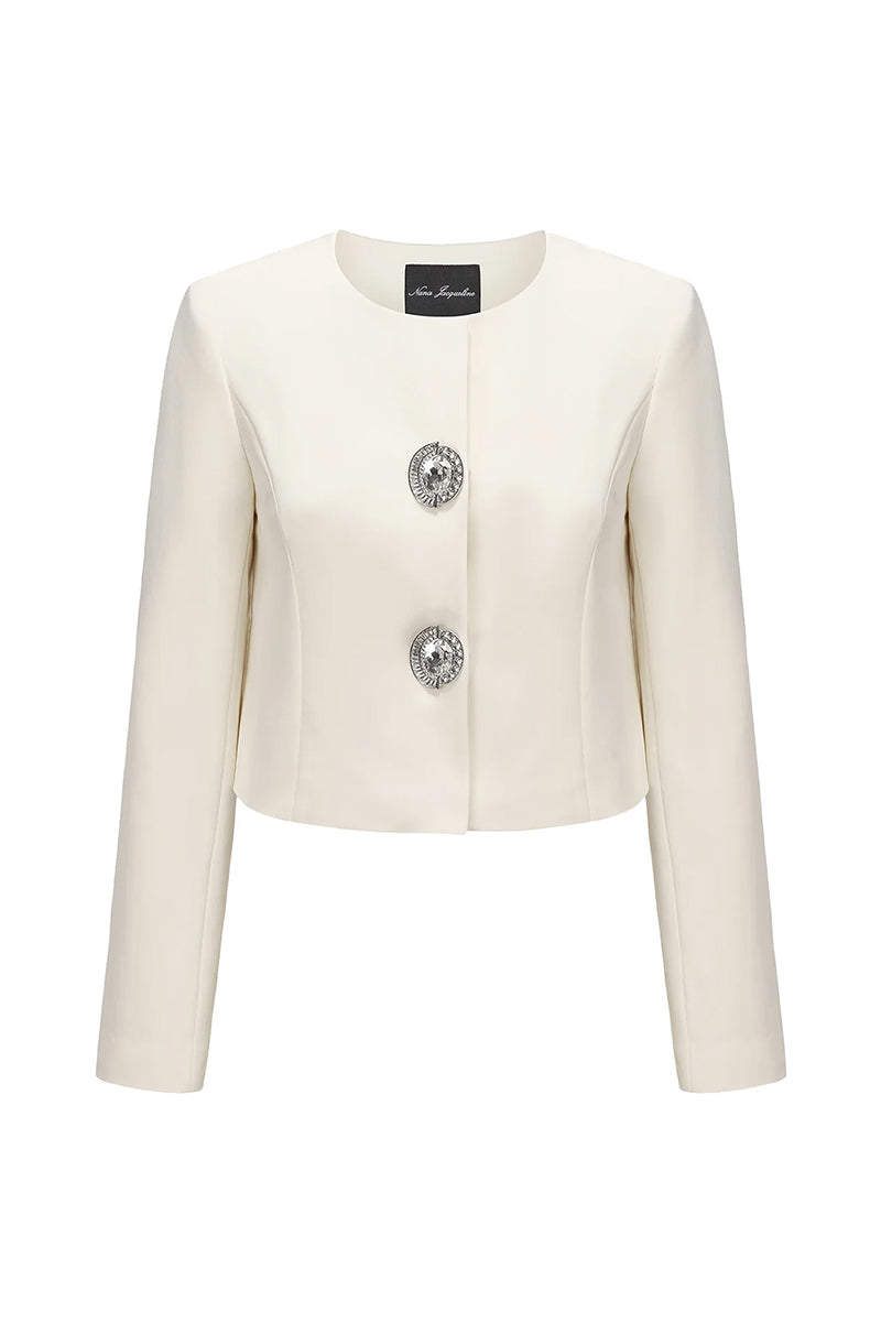 يجسد معطف Claira "الأناقة البسيطة والرجعية الراقية" في تصميمه، وهو مصنوع من قماش بدلة مطاطي لامع لمظهر مصقول ومتطور. يقع هذا السترة المقصوصة فوق خط الخصر مباشرةً، مما يخلق تأثيرًا ممدودًا للجزء السفلي من الجسم ويضيف إحساسًا بالخفة. تعمل وسادات الكتف الرقيقة على تعزيز البنية والتعريف مع الحفاظ على لمسة أنثوية. ينضح خط العنق المستدير بسحر مستوحى من الطراز القديم، مما يجعله متعدد الاستخدامات بما يكفي لارتدائه مع طبقات مختلفة. في المقدمة، يضيف مشبكان ماسيان مبهران صممهما مصممو المجوهرات في نيوجيرسي لمسة نهائية فاخرة، بينما تضمن الأزرار الكبس المغطاة بالقماش مظهرًا متماسكًا وانسيابيًا. مثالي للمناسبات المتعددة، يتحول معطف Claira بسهولة من ملابس العمل الأنيقة إلى إضافة أنيقة لكل من الملابس غير الرسمية والرسمية، مما يُظهر ذوقًا راقيًا وأسلوبًا عصريًا.