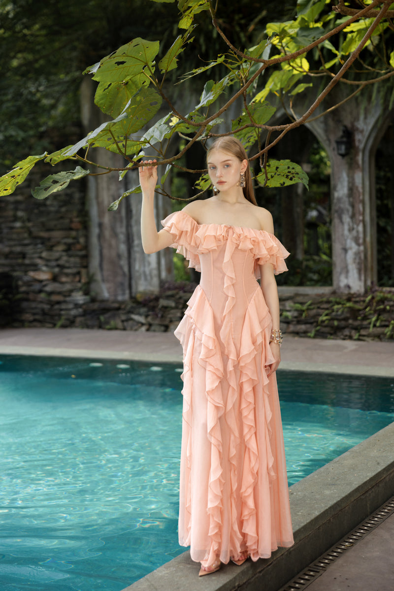 فستان إليزابيث بيتش فويز من الحرير المكشكش
