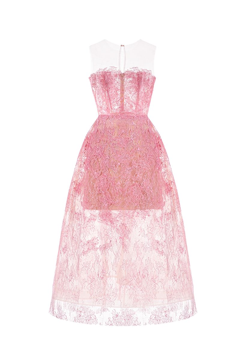 فستان ميدي من الدانتيل باللون الوردي