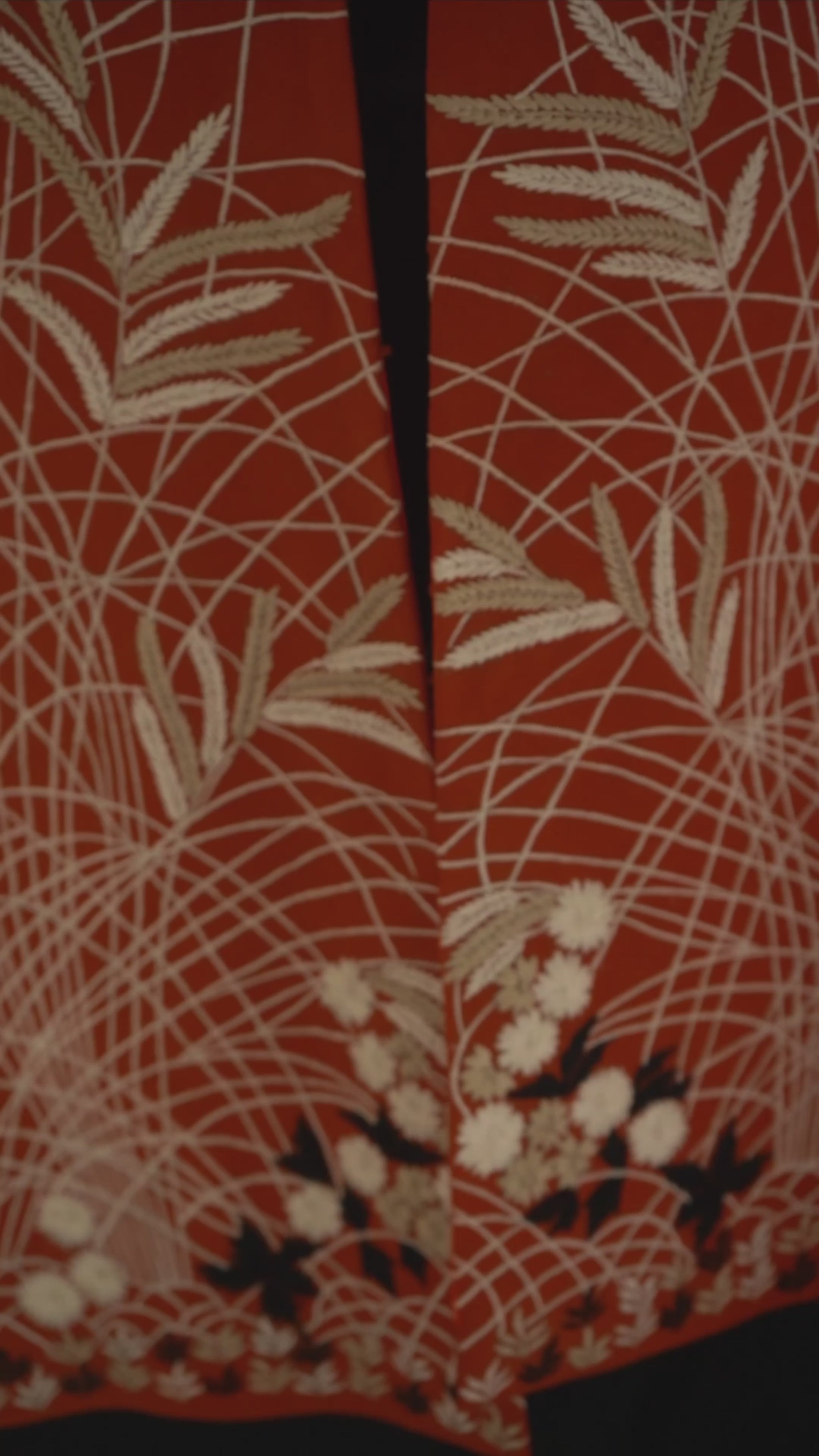 - ملاحظات التصميم - تطريز مستوحى من النباتات بتفاصيل دقيقة باستخدام خيوط الحرير العاجية والأسود والبني