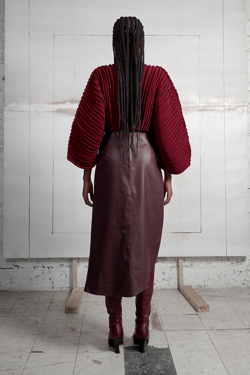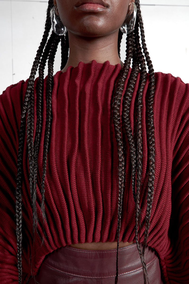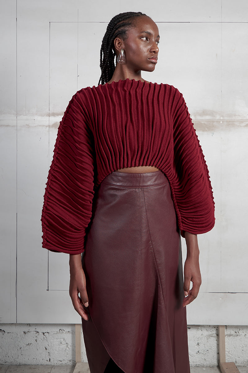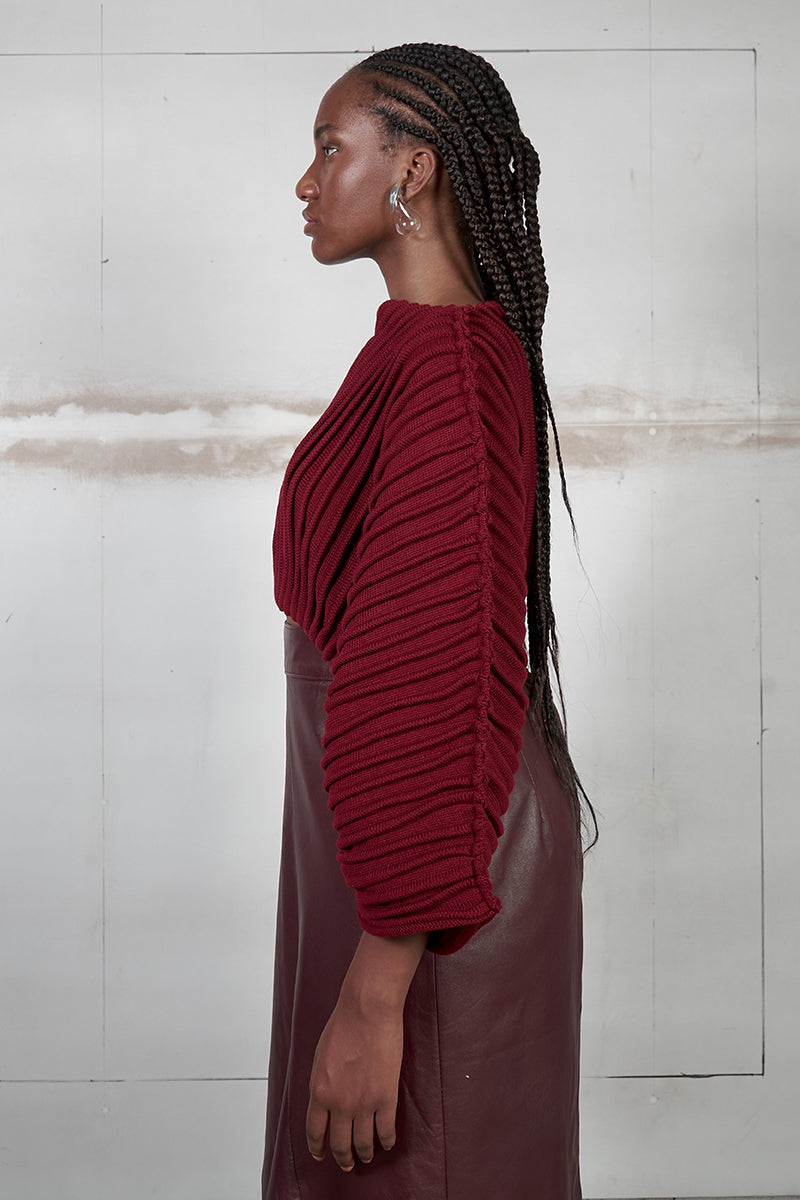سترة حلزون أكورديون باللون الأحمر النبيذي