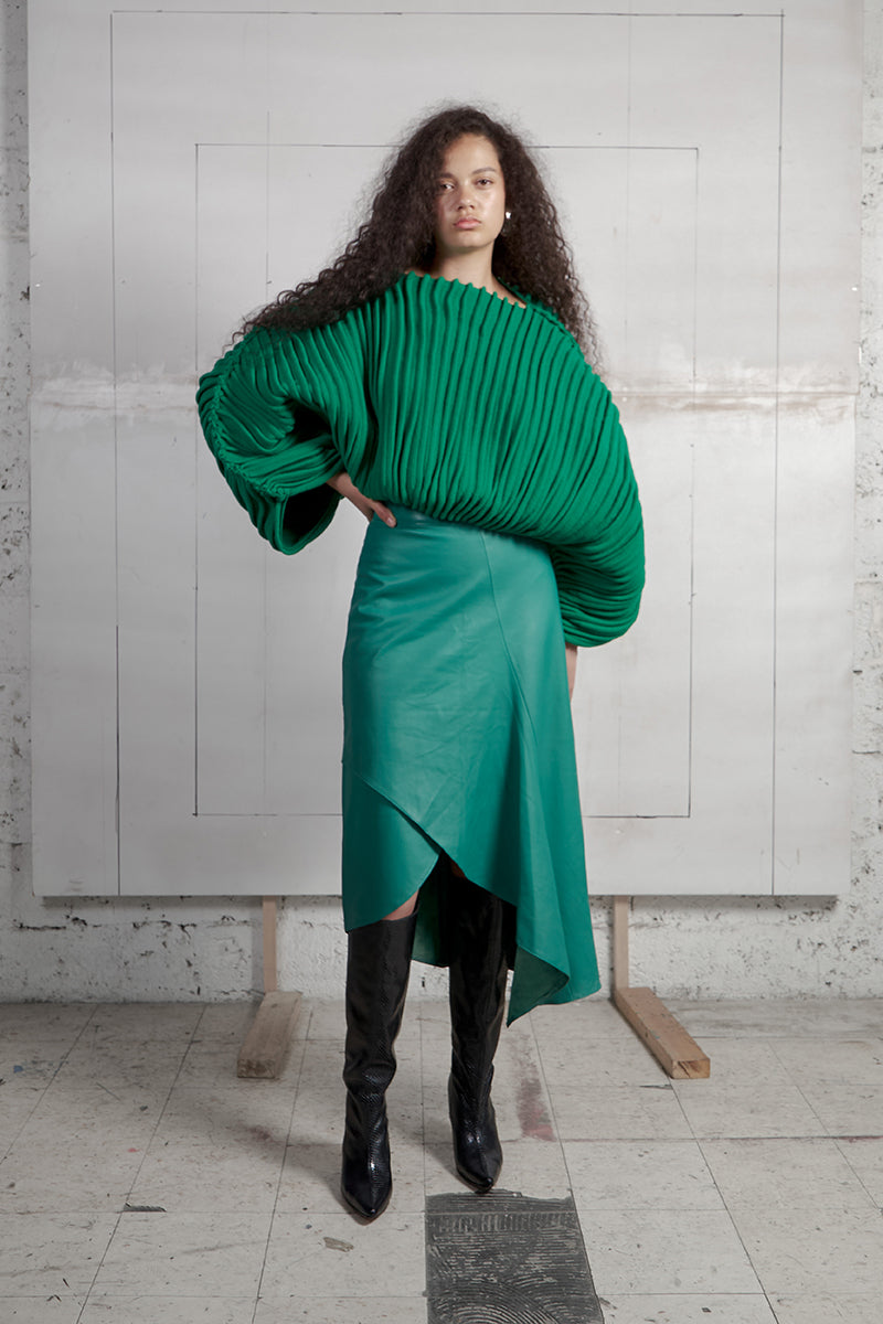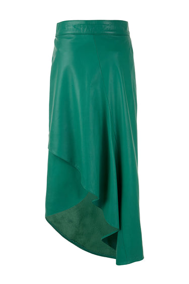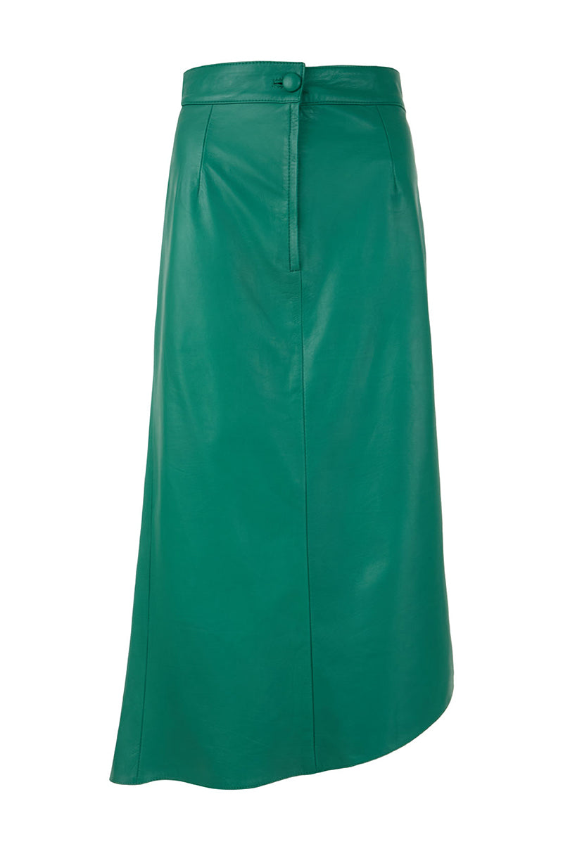 تنورة جلدية أنبوبية بتلات باللون الأخضر ميلانو
