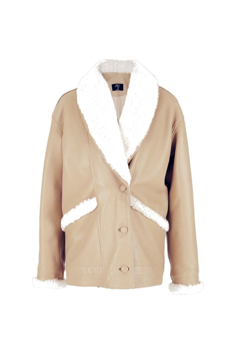 سترة هيدرا شيرلينغ من الجلد باللون البيج