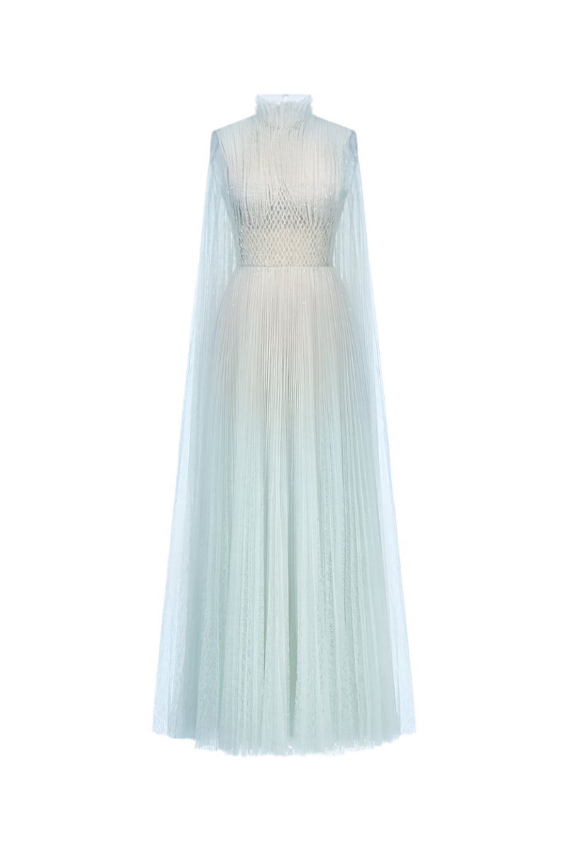 فستان ماكسي أزرق من الدانتيل المطرز