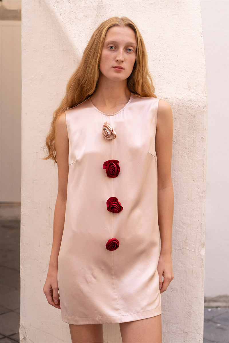 فستان Tuscan Bloom الحريري بدون أكمام أنيق للغاية، يجمع بين التصميم الخالد والحرير الفاخر. تتدفق الورود الحريرية المصنوعة يدويًا على طول الجزء الأمامي، مما يضيف لمسة من الرومانسية والسحر. يوفر التصميم المريح الراحة والأناقة، مما يجعله مثاليًا لحفلات الزفاف أو الاحتفالات أو أي مناسبة خاصة.