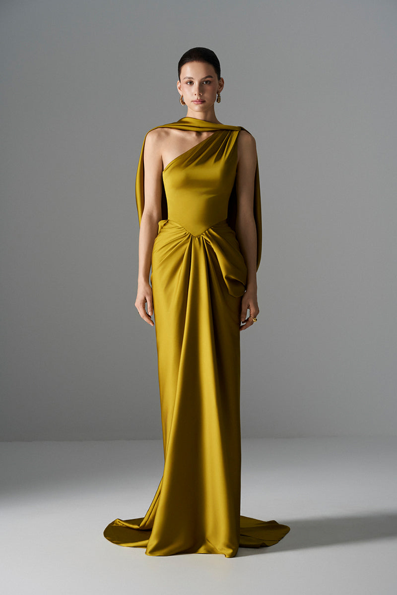 - يتميز بفتحة رقبة مثيرة على كتف واحد وتصميم متدفق عبر الكتف.