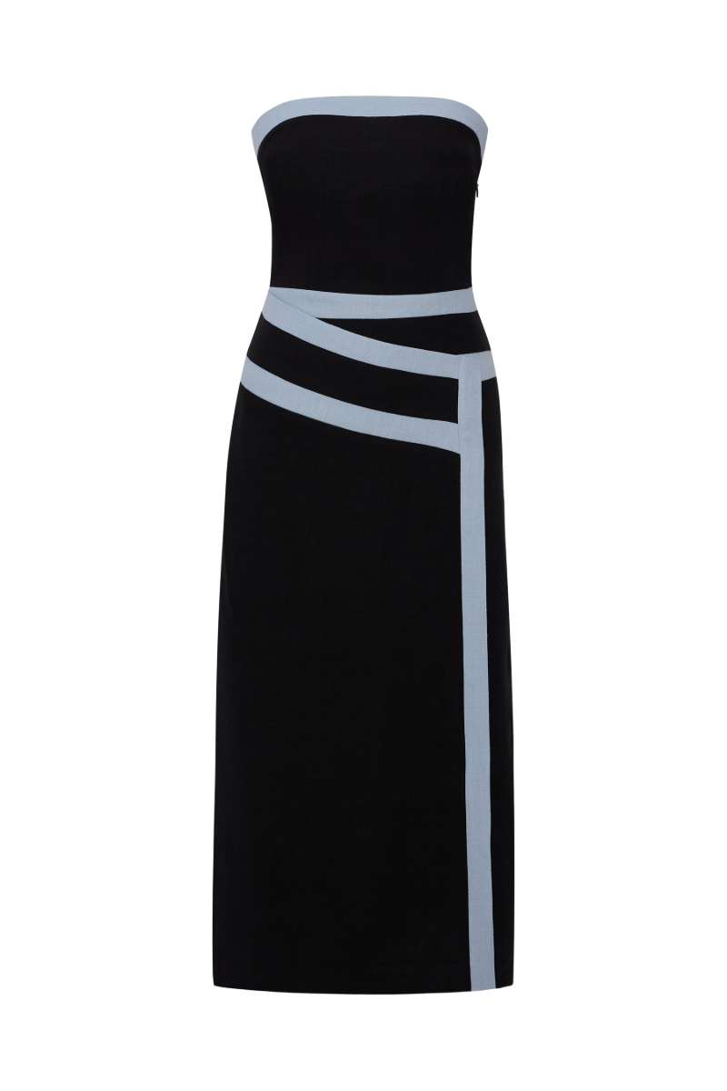 فستان إيلينا الأسود بدون حمالات من الكتان