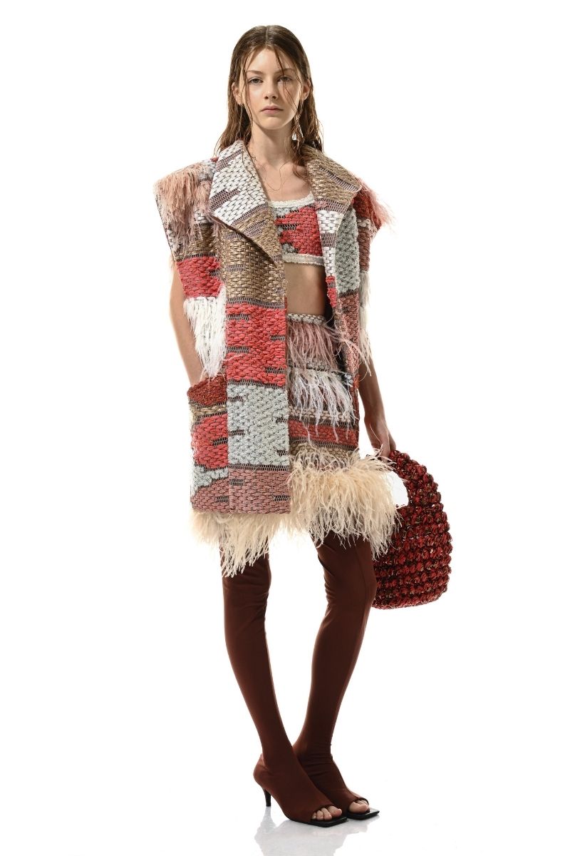 التركيب: 45% صوف، 15% موهير، 40% أكريليك، 100% ريش طبيعي