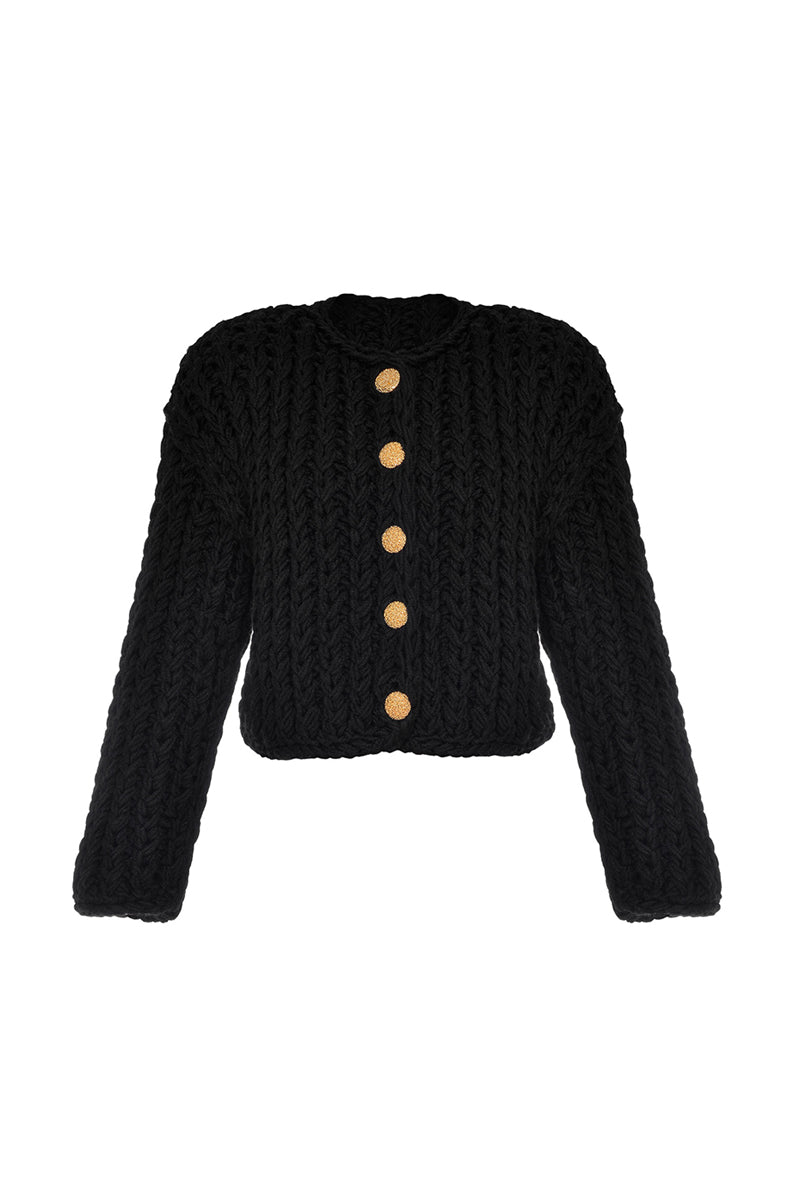 كارديجان من الصوف المحبوك باللون الأسود